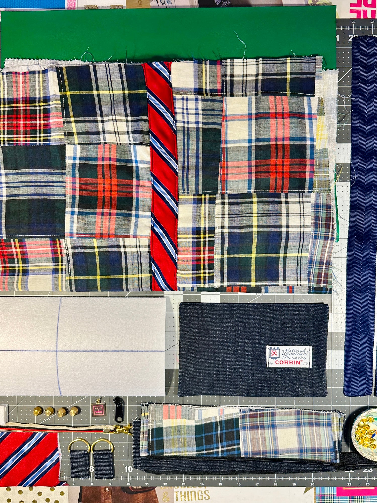 Although certainly the most fun, sourcing materials is surprisingly one of the more tedious steps in our process. This is because instead of heading to the fabric store and asking a sales clerk to point us in the direction of their spunkiest plaid or their coolest camo, we spend hours sorting through thrift stores, Goodwill bins, and estate sales looking for the perfect fabrics, prints, and designer goods looking for a second life. This makes finding the perfect piece all the more thrilling!