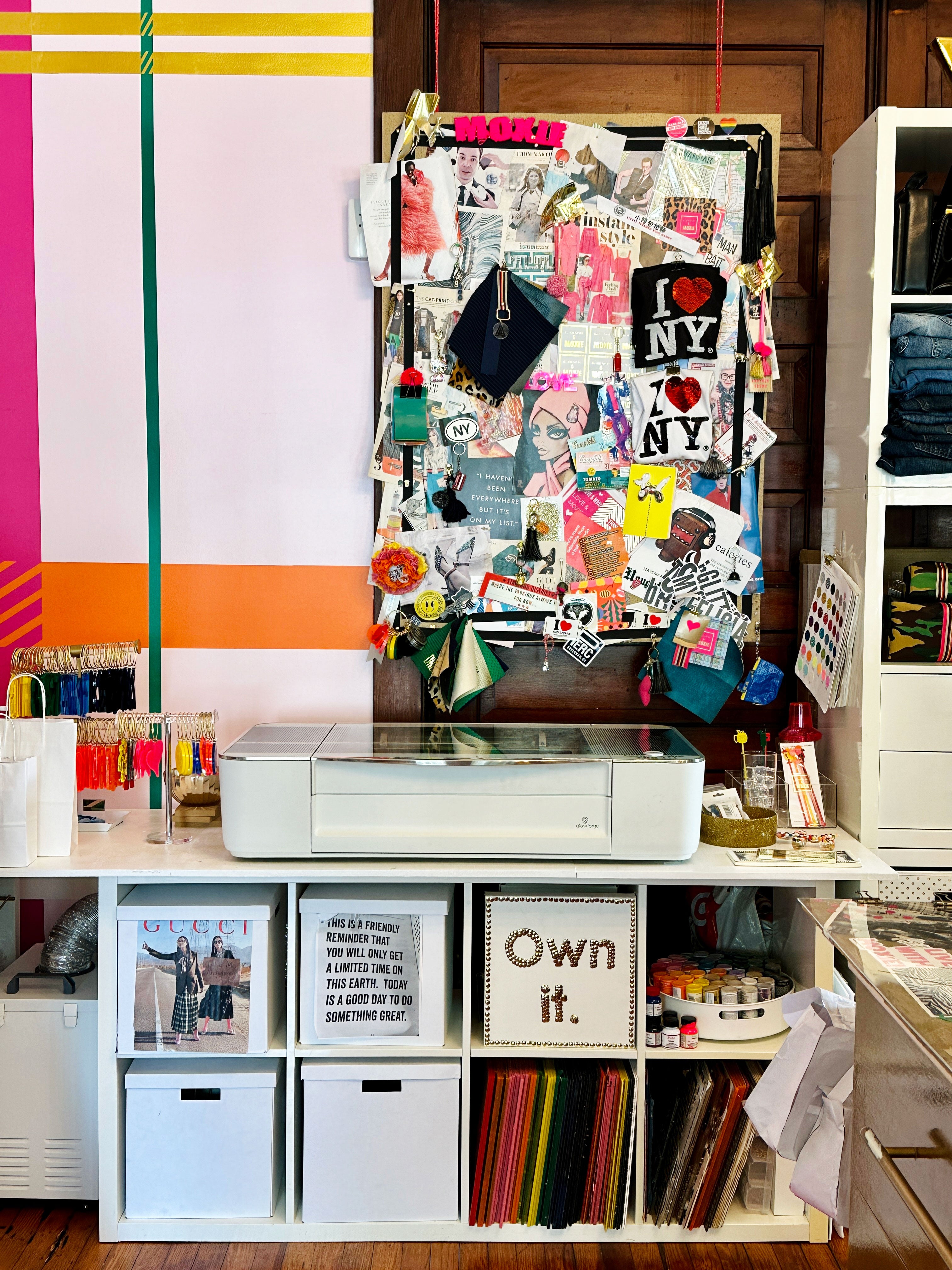 bins & baskets - This one may seem like a no brainer, but being mindful of choosing the right size and style of your storage bins is key when it comes to elevating your space! From organizing drawers to stylishly corralling bolts of interfacing, shipping supplies and sewing essentials we use bins & baskets EVERYWHERE. One of our favorite "hacks" to concealing our less visually appealing tools & materials (we're talking about you shredder) is a good ol' basket with a lid. TJ MAXX is our favorite haunt for bins & baskets of all sizes.