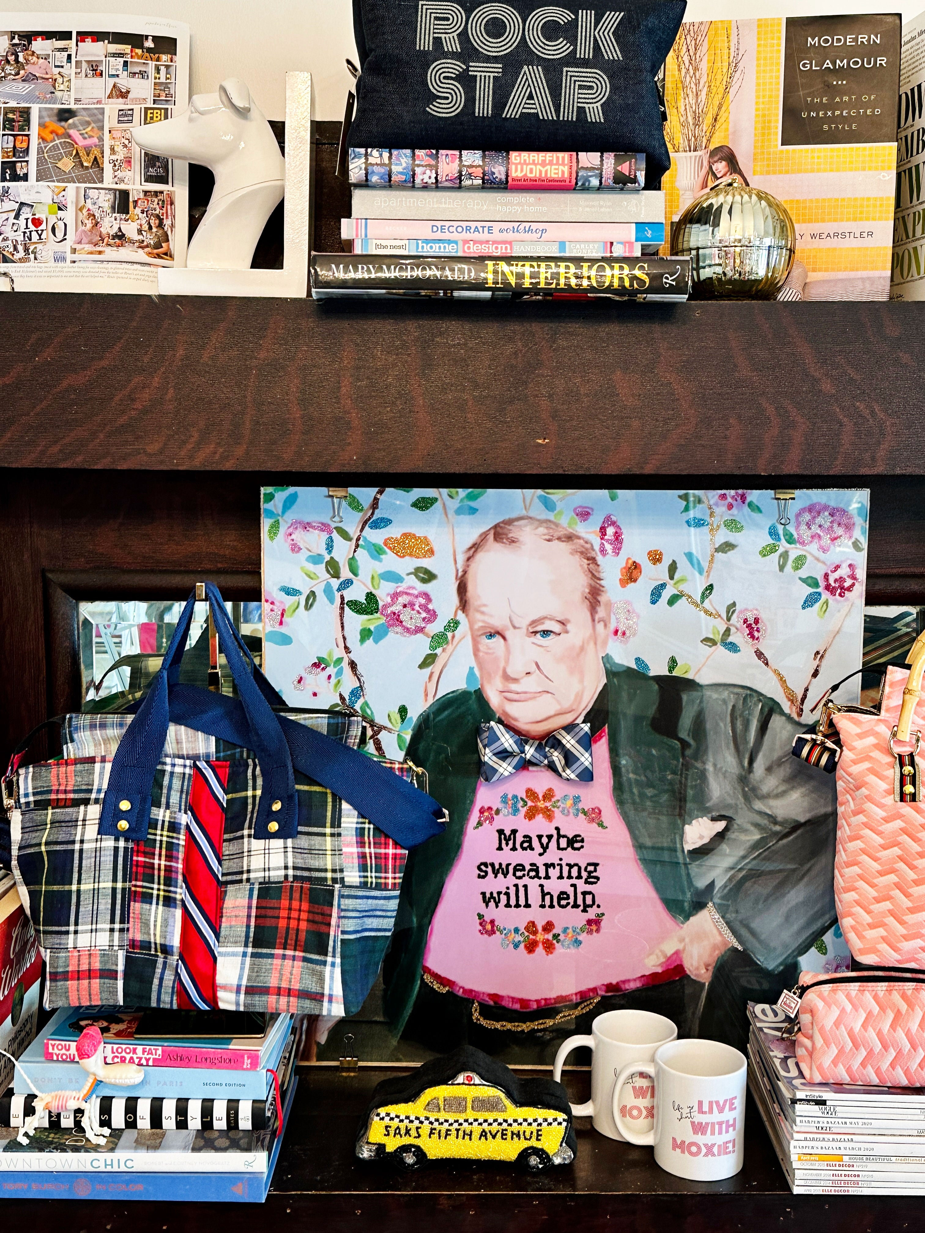 Given that we are constantly collecting vintage and second-hand goodies to upcycle into our fabulous bags and accessories, it’s no surprise this was a must-have. Keeping all those thrifted treasures out in the open (vs stuffed in a bin on behind a closet door) allows for constant inspiration from all the color, patterns, shapes, and details.
