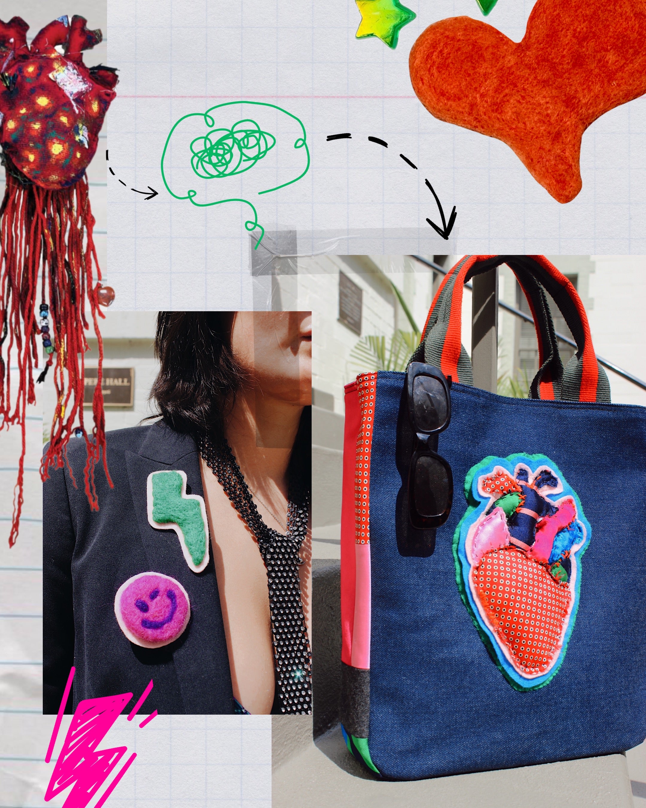 Working on this collection over the past nine months, it’s safe to say we drew inspiration from a million and one different places — and we’re not mad about it! Sifting through Gia’s portfolio, we fell in love with a heart motif she frequently experiments with in her own work. Lucky for us, this made for an absolutely fabulous tote embellishment.