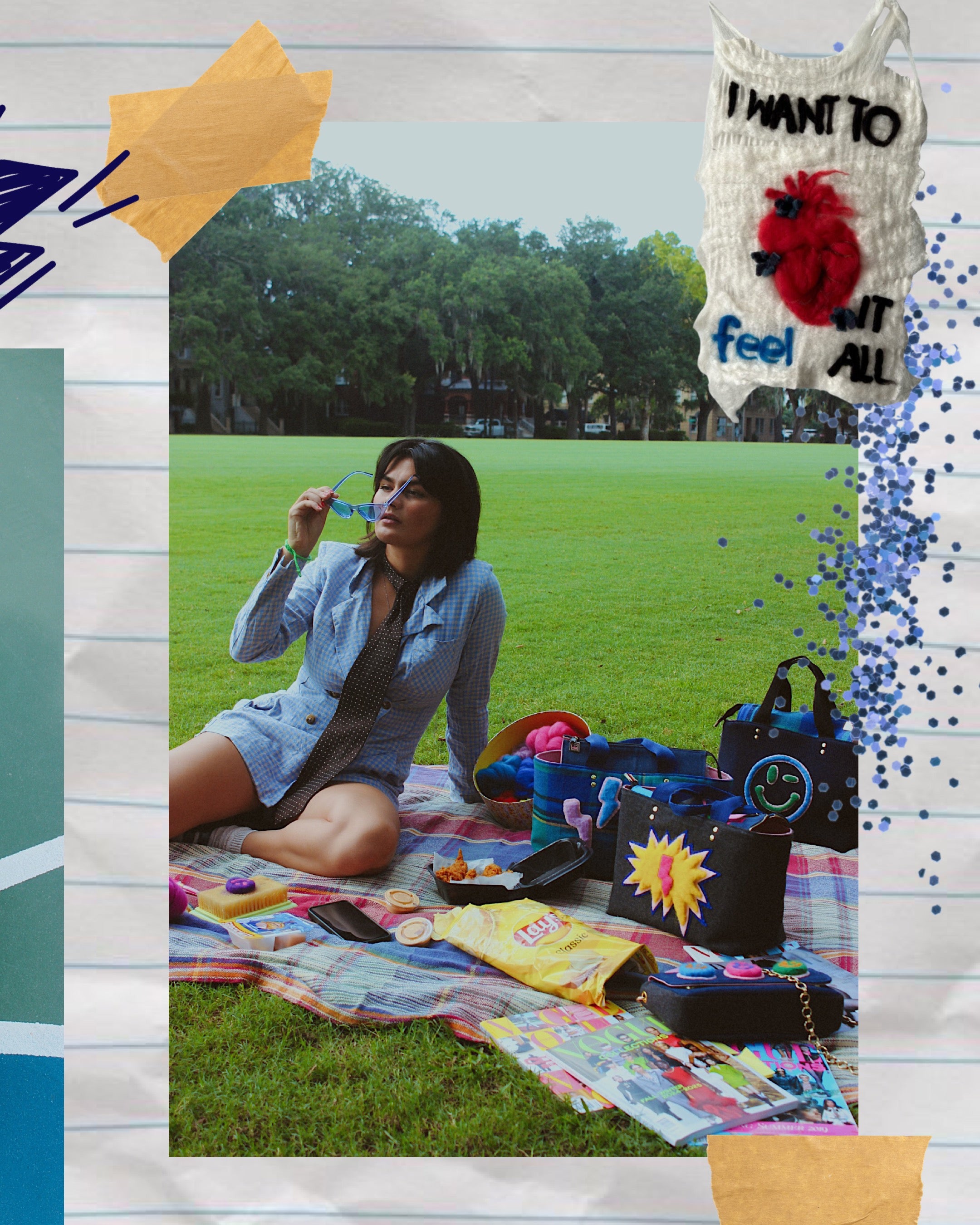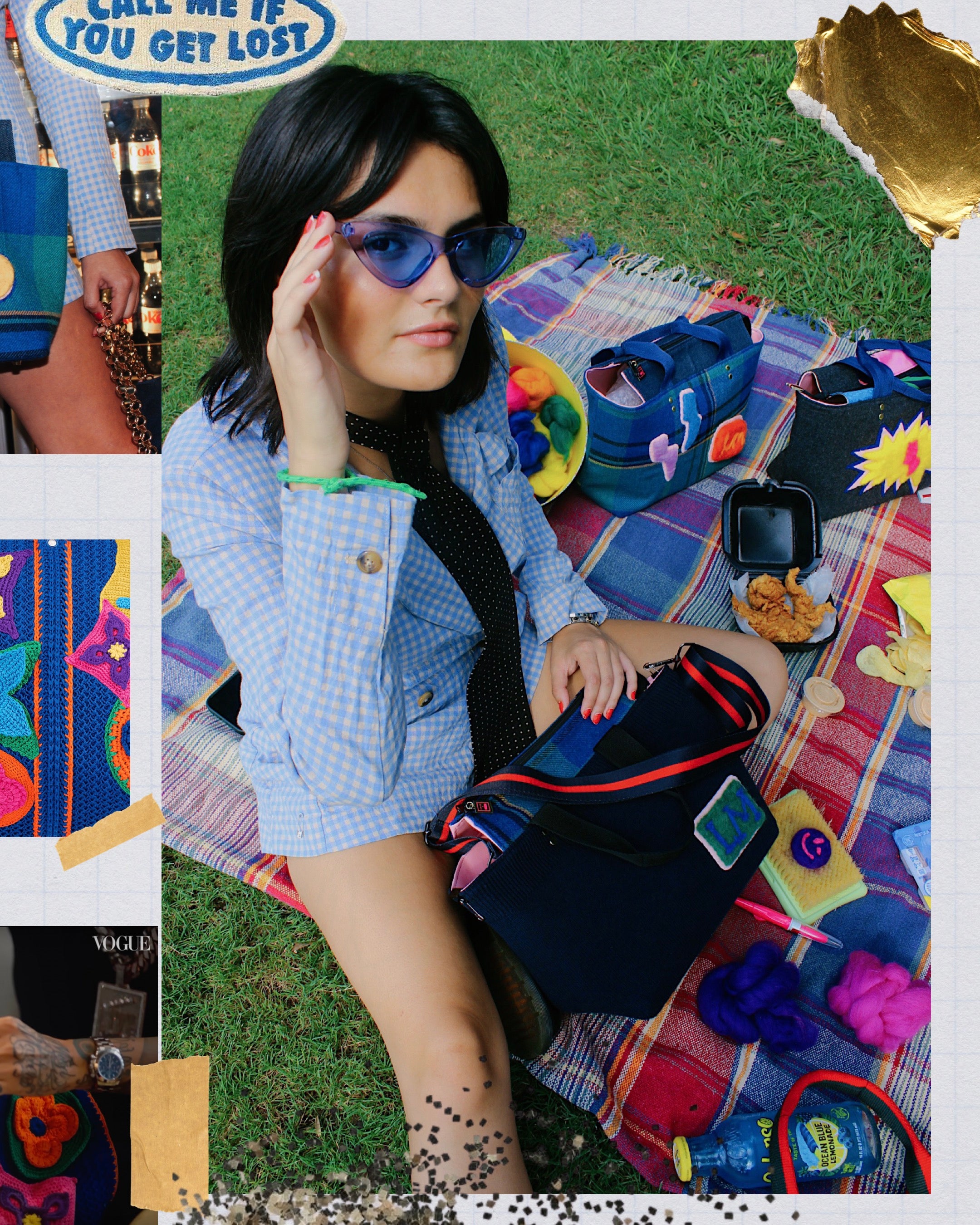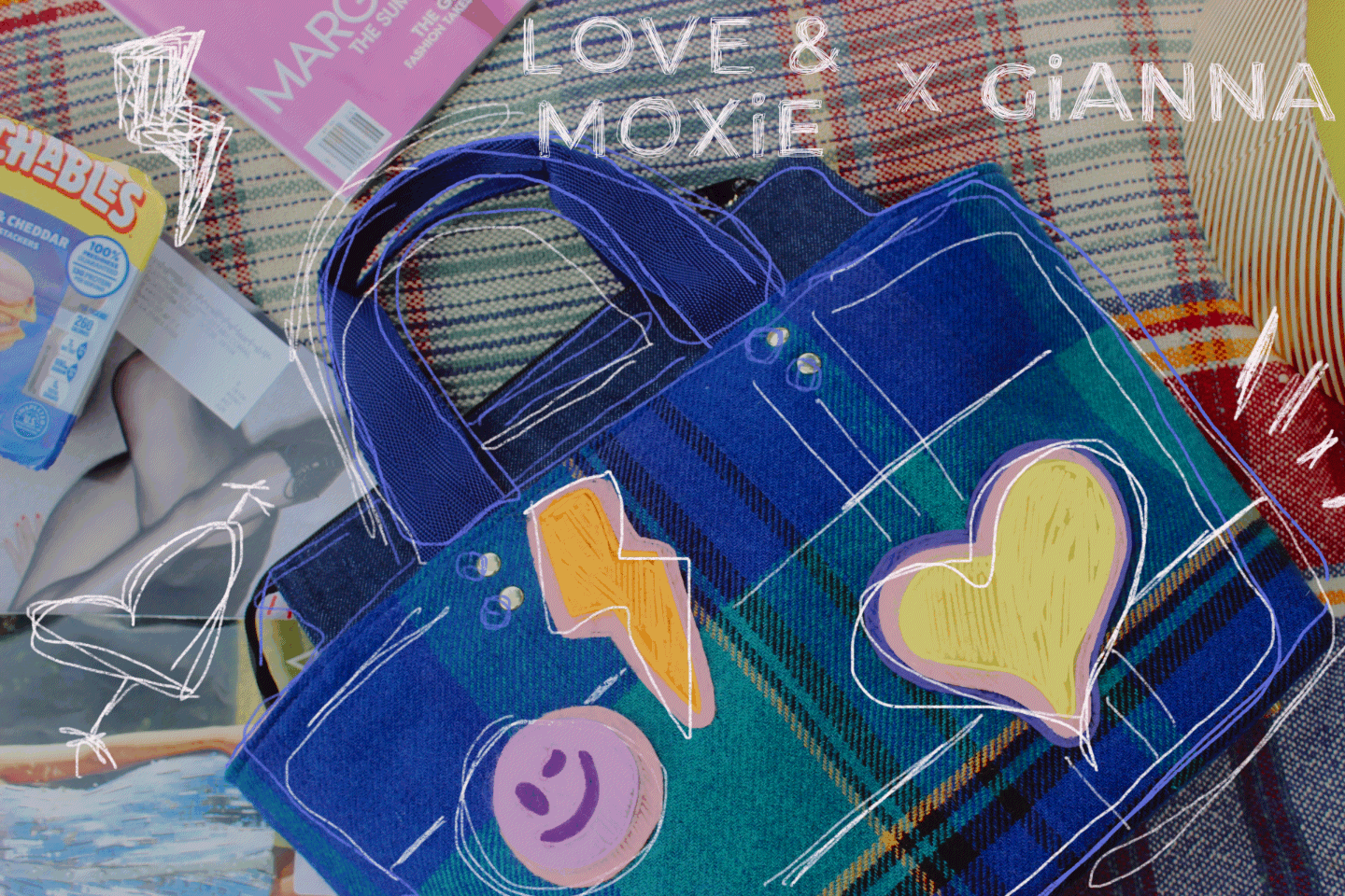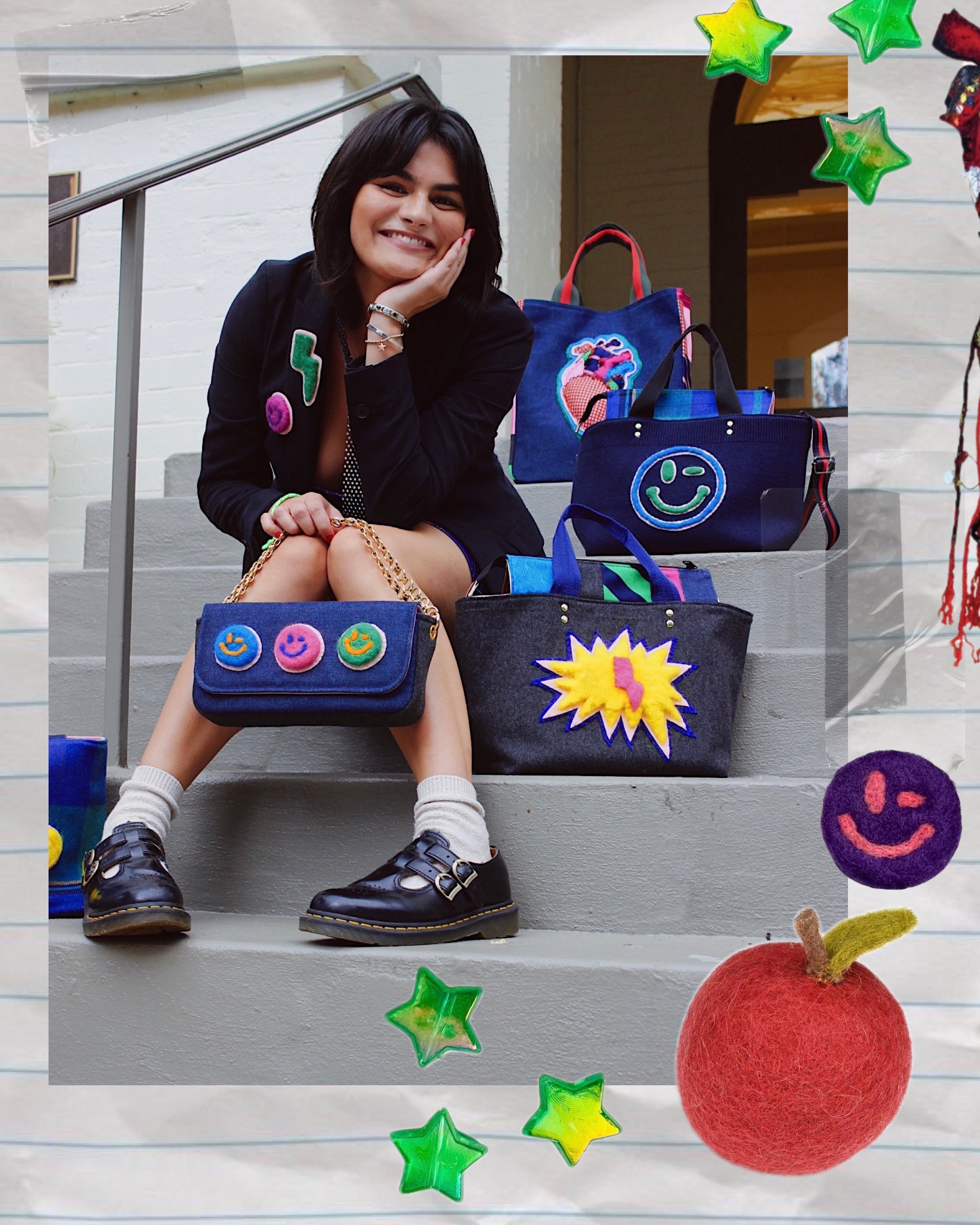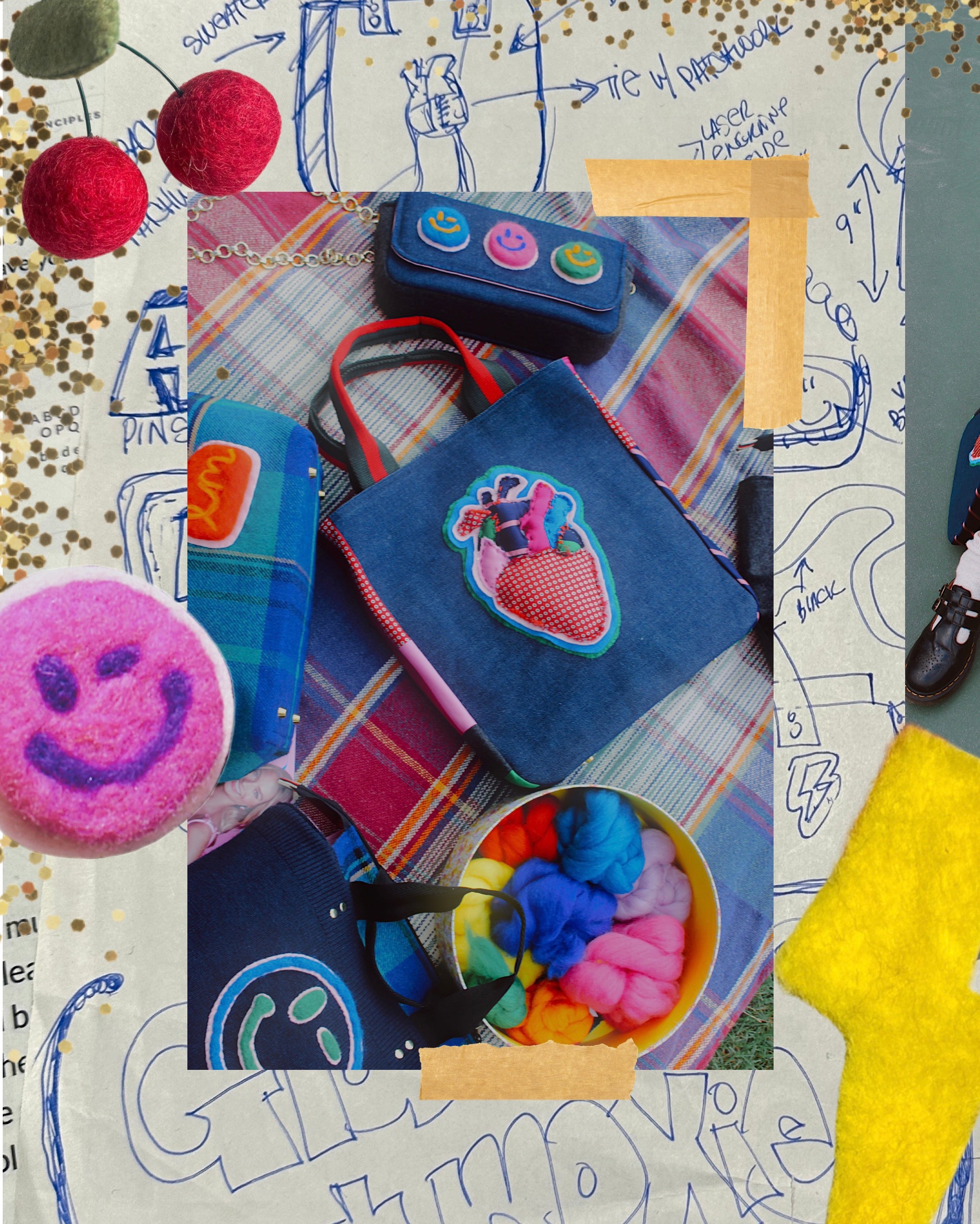After coming across a Louis Vuitton duffel with brightly colored, crocheted motifs, we knew we wanted to create a collection inspired by the spunky color pallet and the idea of playing around with dimension. Ultimately, with Gia’s help, we decided on felting our infamous moxie-motifs as opposed to crocheting. This gave us a lot more room to experiment with the 3D-aspect, allowing the plaids and felted textiles to make for an oh-so perfectly timed fall collection — just in the nick of time for back to school! ;)