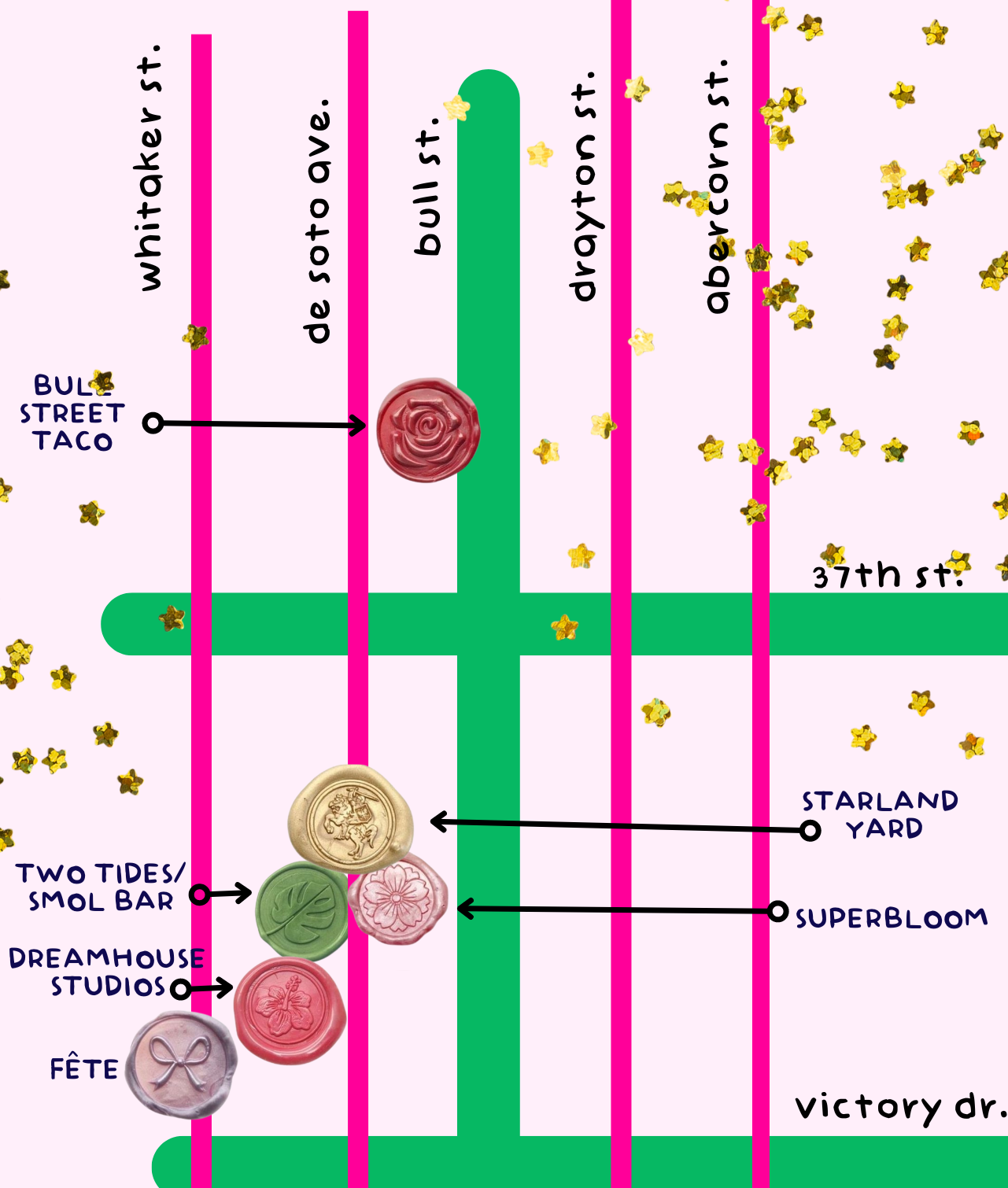 If you're looking to keep the good vibes going after your shopping, sipping, and crafting, we recommend popping over to see our pals at Smol Bar or Starland Yard (2411 De Soto Ave). We'd be lying if we said you miiiiiight have to fight for a spot next to a fan, but the good eats and summer slushies are arguably worth it. But hey - this is Savannah - you can always take it to-go ;)