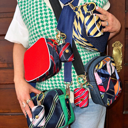 the cutest clip-on padded AirPod cases crafted from deconstructed ties to keep...