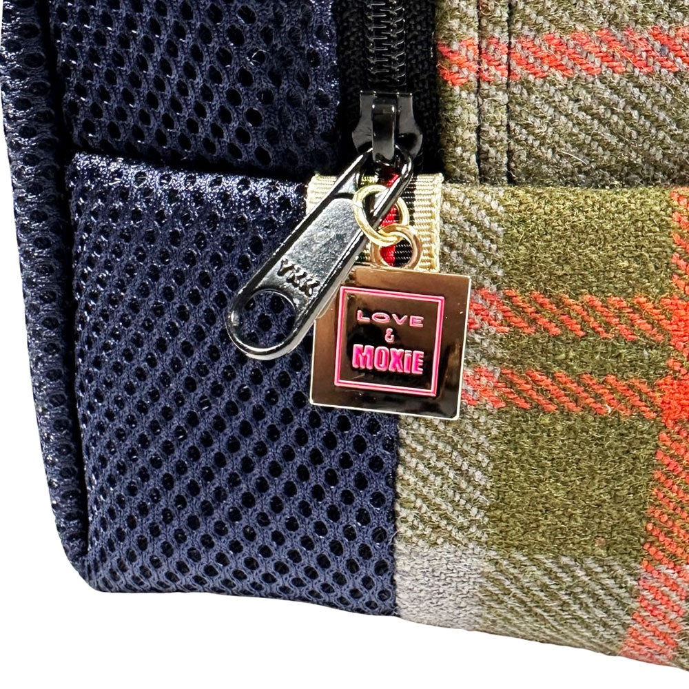 Meet the Winston biggi bag, your snazzy new bestie, happy to hold all your stuff while bringing a smile to your face. Meticulously handcrafted from a deconstructed vintage 60's plaid dress and mesh neoprene (reduce, reuse, recycle- yes please!), she's truly unique like you. From her wipe-clean waterproof canvas lining for those inevitable product leaks and re-enforced seams so she'll retain her good looks, she's packed with thoughtful details. She's perfect for keeping you organized on the go from travel necessities, first aide kits, tech accessories, & more.