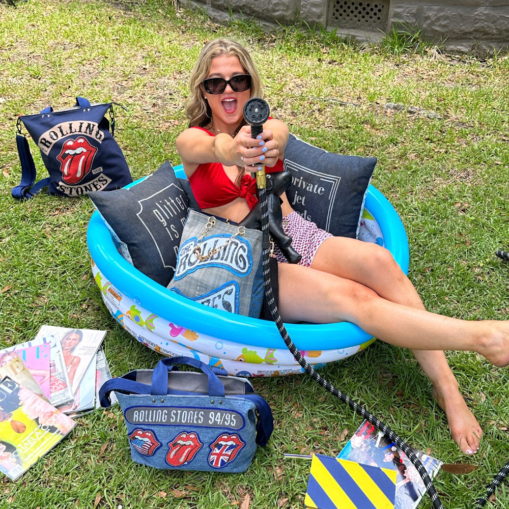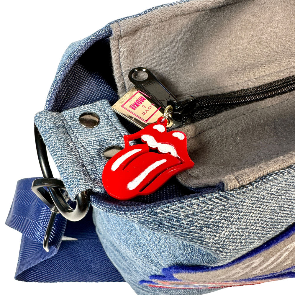 Say hello to Angie, your rockin’ new bestie ready to take on a world tour, commute to work, and everything in between. As always, she’s 100% handmade from an upcycled pair of Levi's and a Rolling Stones t-shirt. If you can’t get no satisfaction from flimsy Amazon finds or your worn out faves due for retirement longer than Keith Richards himself, Angie’s meticulously crafted rhinestone and studded details, adjustable crossbody strap, wipe-clean canvas lining, and integrated key leash are bound to turn things around and coral your must-haves in style.