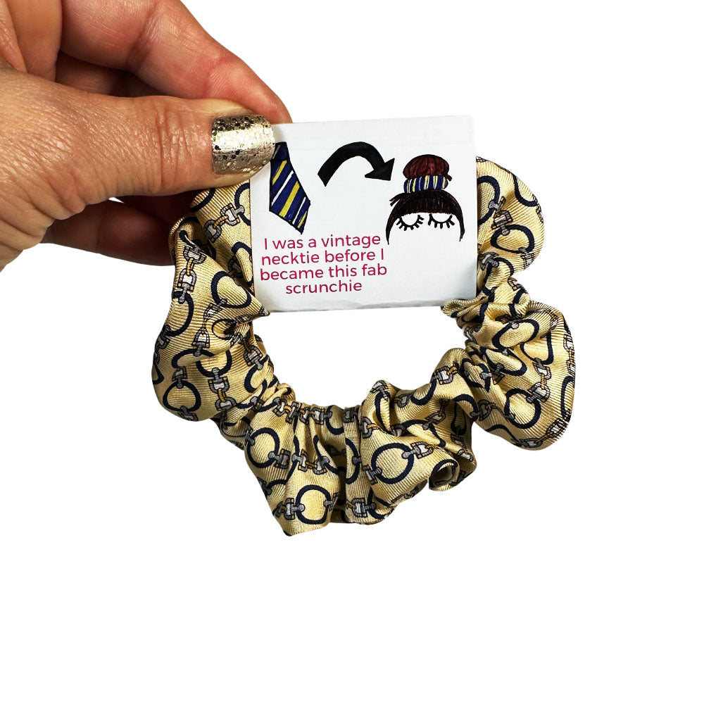 Looking to tame your flyaways in style? Look no further, our one-of-a-kind scrunchie has you covered. Handcrafted from a fab upcycled necktie and durable thick elastic (so it will stay in place), it'll make a statement holding up your hair or on your wrist. Best part it's silk so it'll easily come out without snagging your hair.
