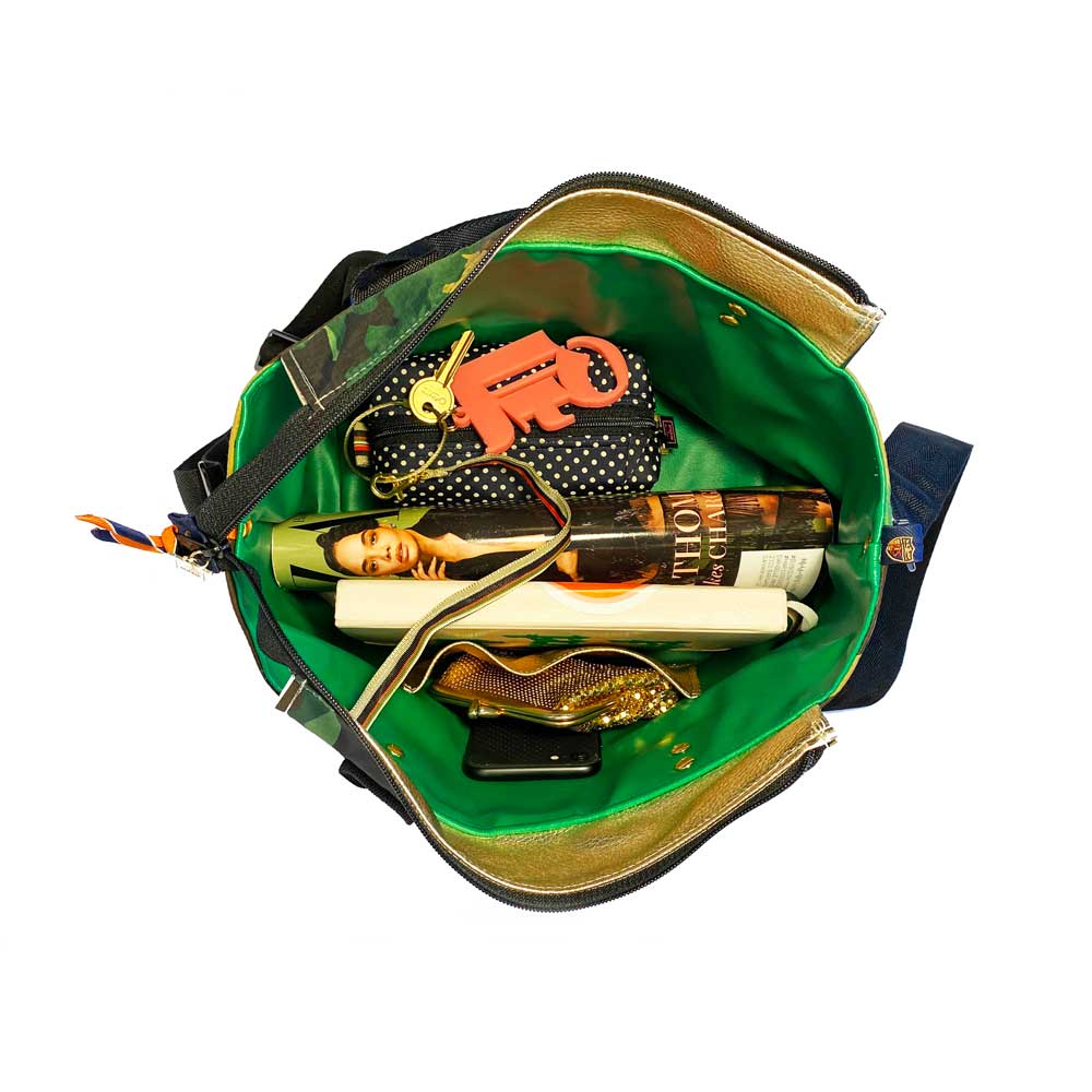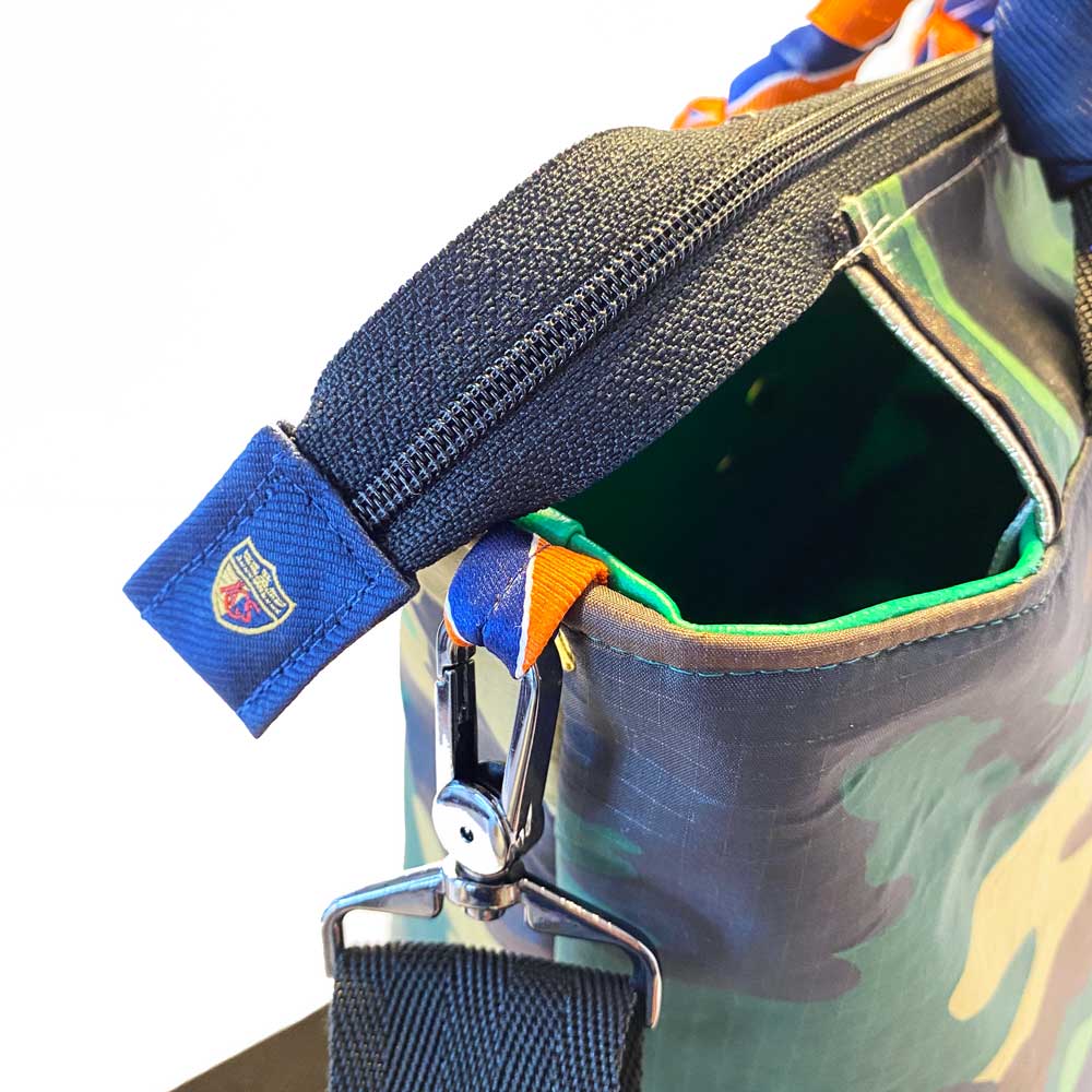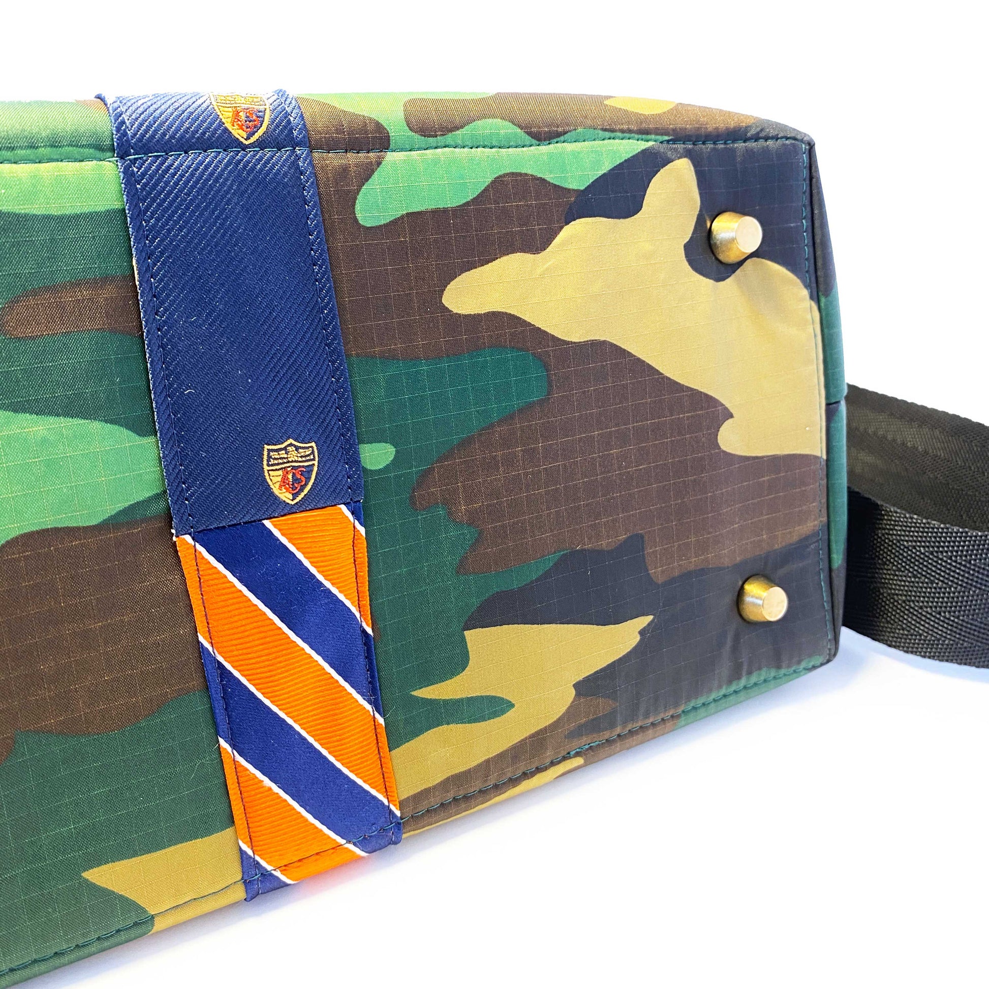 Say hello to Washington, your new BFF, she'll hold all your stuff in style and won't ever complain about it. She's a little two-faced, but that's why you love her. A hybrid upcycled bag, she's meticulously handcrafted from rip-stop nylon and two deconstructed upcycled neckties which make up her sporty detailing, different on each side, and interchangeable handle covers so you can change her up with your mood. Washington isn't just a pretty face, she's thoughtful too. She'll make your leaks and spills disappear with her wipe-clean vegan leather lining, have your keys at the ready with her integrated key fob, corral your phone inside her slit pocket, and be hands free with her adjustable crossbody strap. Come on, admit it, you know you wanna be friends ;)