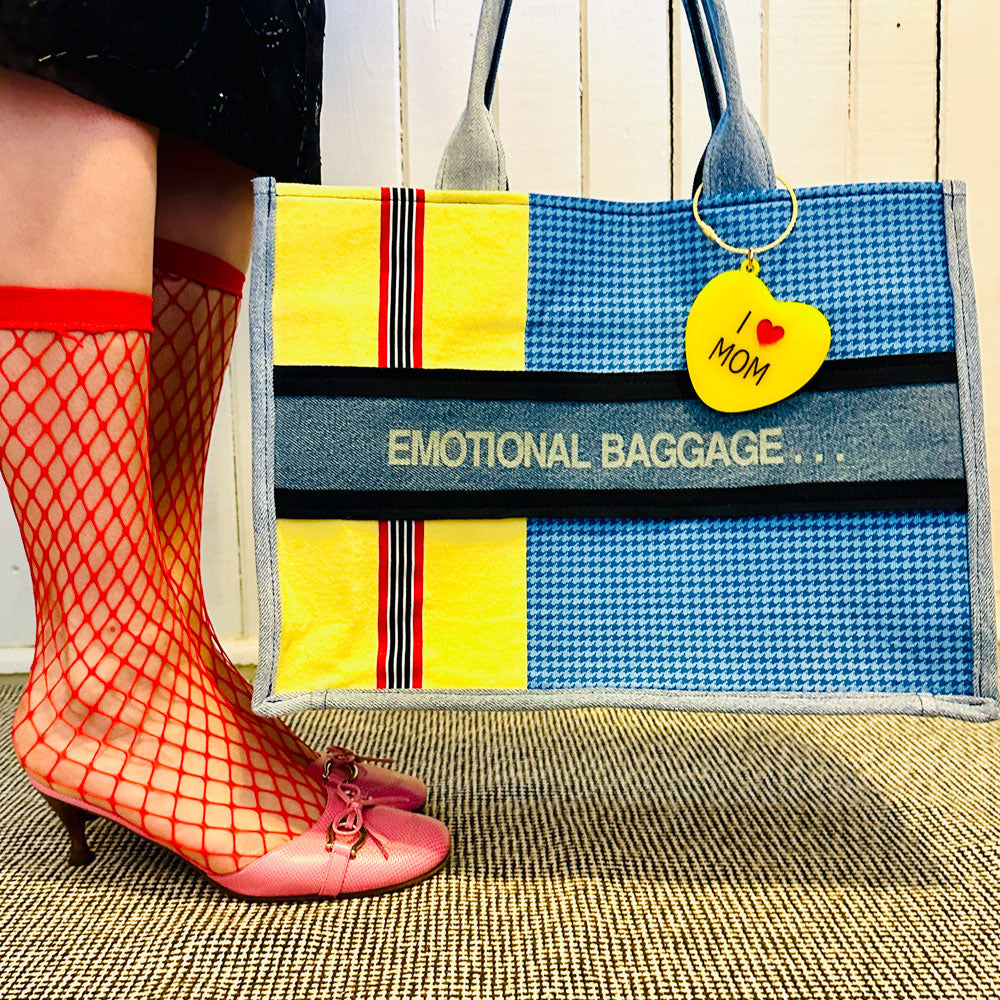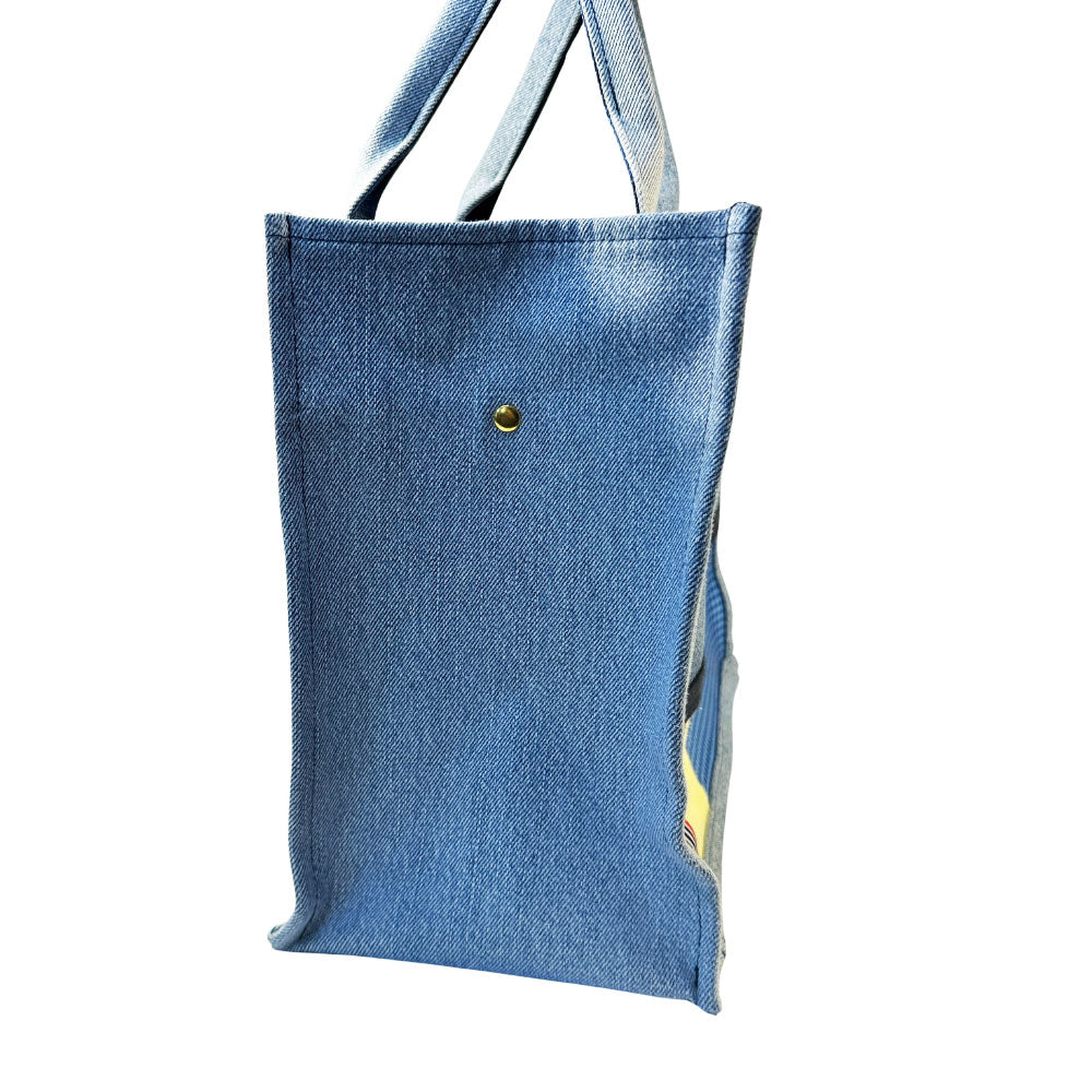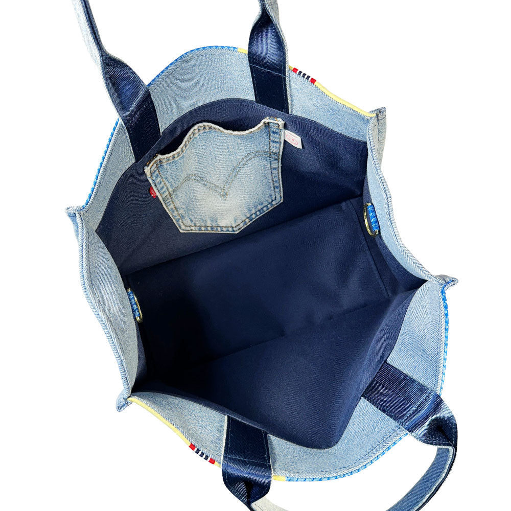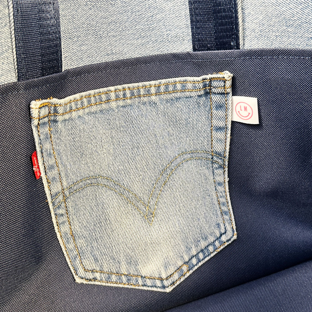 Say hello to Coco, your new happy-go-lucky BFF, she'll hold all your stuff while adding surf vibes to any fit. Previously a Tommy Hilfiger yellow t-shirt and Greg Norman houndstooth tech polo, she was carefully deconstructed and married with a classic pair of Levi's jeans which were also laser engraved with her cheeky graphic detailing and also used to cover her seat belt webbing handles, before transforming into her current state complete with inside Levi pocket with original label, d-rings to clip your keys to or convert her to a crossbody bag, and wipe-clean waterproof canvas lining. Come on, admit it, you wanna be friends ;)