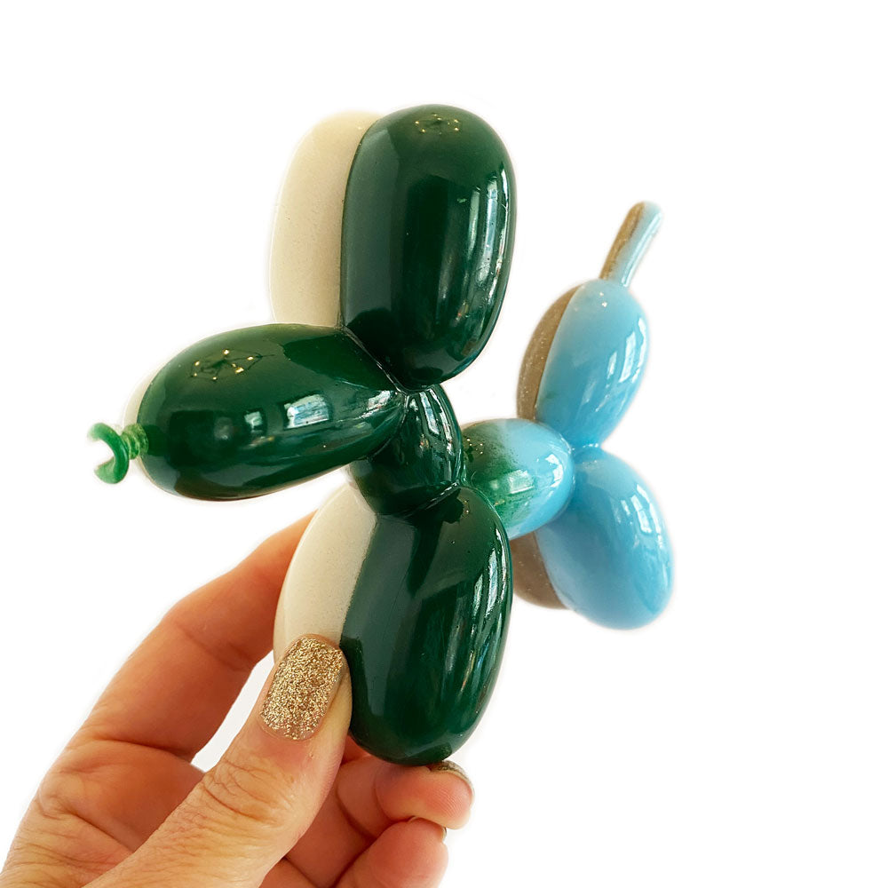 Add a touch of whimsy to your home and a smile to your face with this one-of-a-kind timeless balloon dog sculpture. Meticulously handcrafted of color blocked shimmery resin, she captivates on a coffee table or perched on a shelf. Plus she's full of substance, with her intentionally crafted slightly imperfect nose she celebrates the concept of wabi-sabi - finding the beauty in the imperfect and as a dog, representing friendship, loyalty, love, and protection she makes a thoughtful gift. This delightful canine won't have to bark to get noticed.