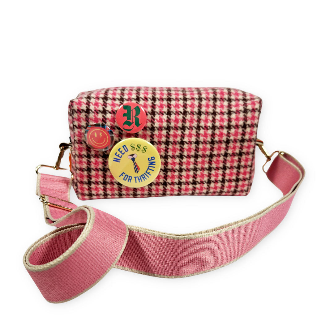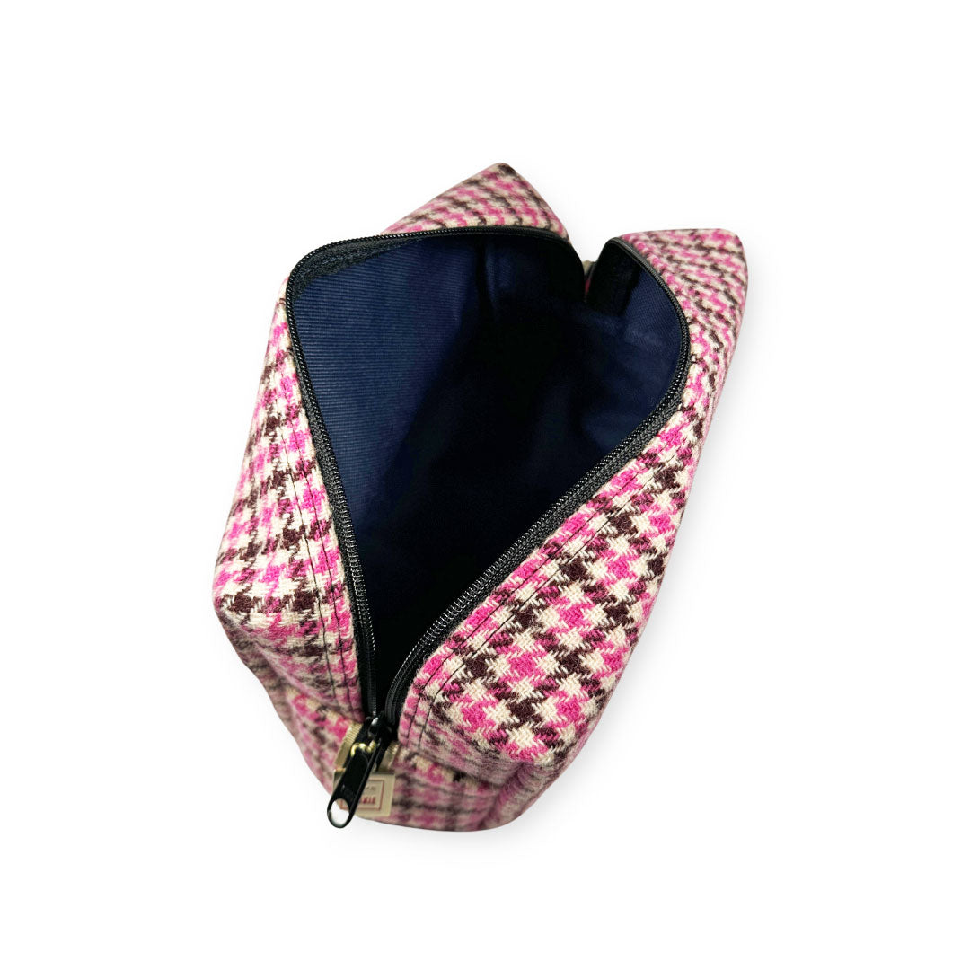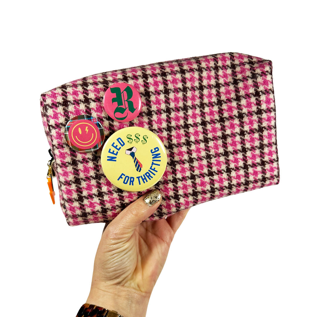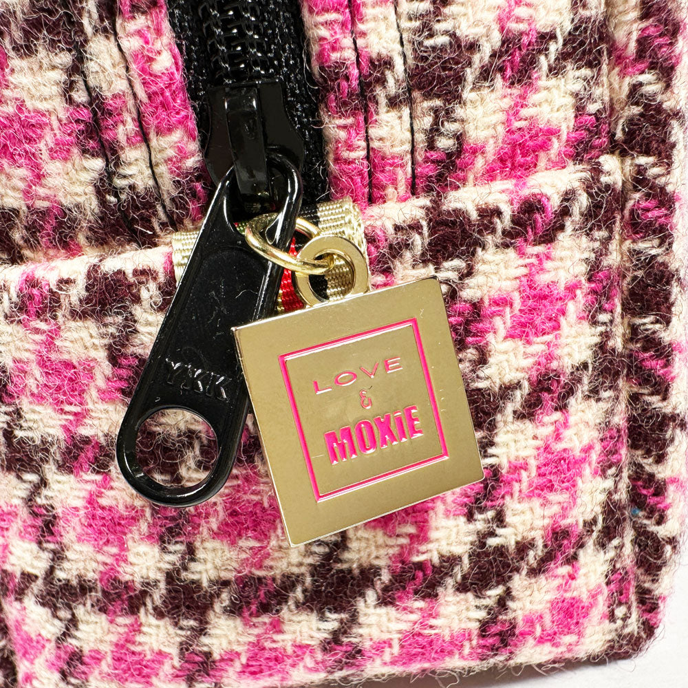 Meet Cordelia, your snazzy new bestie perfect for corralling all your on-the-go goods. Her fabulously functional size makes her perfect for organizing your tech must-haves, toiletries, make-up, and more. In oh-so typical LOVE & MOXiE fashion, she is made from 100% upcycled materials, a plaid wool skirt. Even better, Cordelia is lined with a wipe-clean, waterproof canvas, which means no more trips on the hot mess express or grimy bottoms when your blush pops open or your contact solution takes a spill.