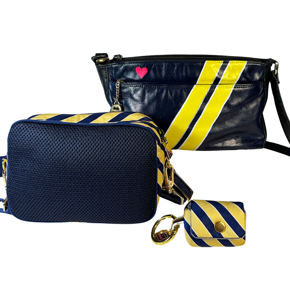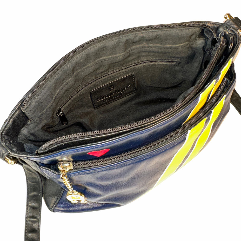 Meet Frida, the marvelous must-have for all your must-haves . . . her multiple pockets are sure to keep all your essentials organized! At her core, she's an upcycled, vintage leather handbag by Etienne Aigner - the it-bag of the 80's, baby! Frida's details are meticulously hand-painted and originally inspired by a thrifted necktie, bringing a lil' extra pizazz to this timeless leather lady.