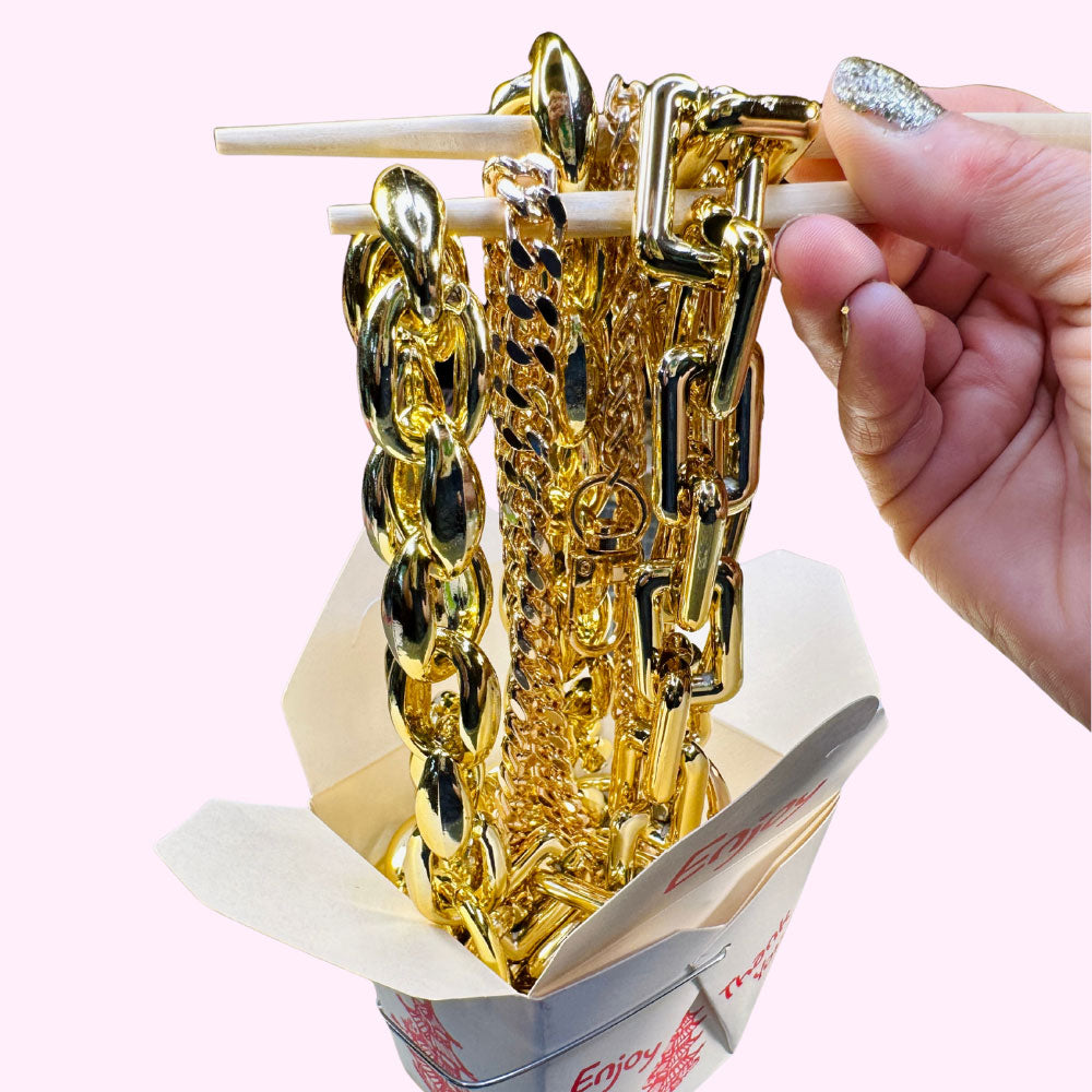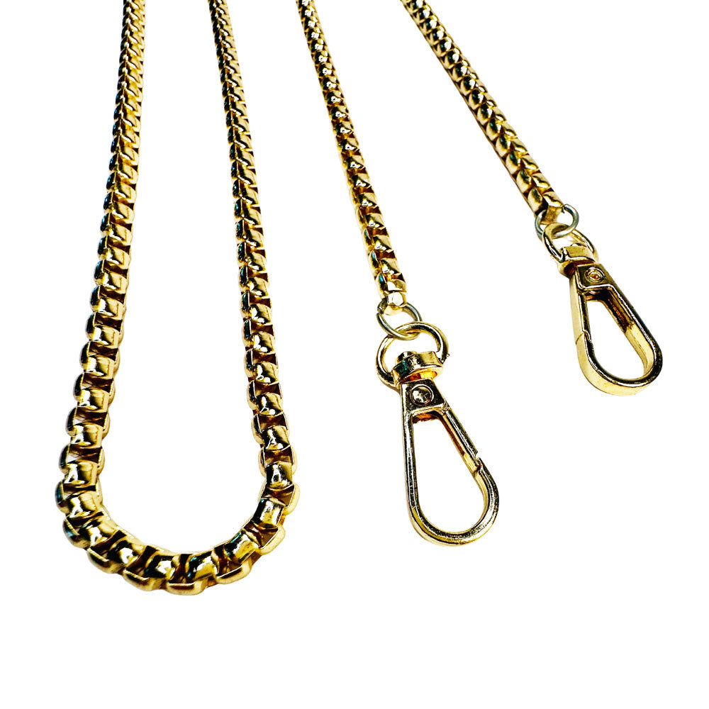 Whether you're customizing a L&M bag for a more personalized touch (fun tip: you can transform our boxie bags into cute handbags) or looking to spruce up an old bag in the back of your closest, our shiny heavyweight metal chainlink bag strap offers just the right amount of hands-free bling and support for your favorite bag and all it’s belongings. Easily clip on and turn any bag into a crossbody or loop twice as a shoulder strap.