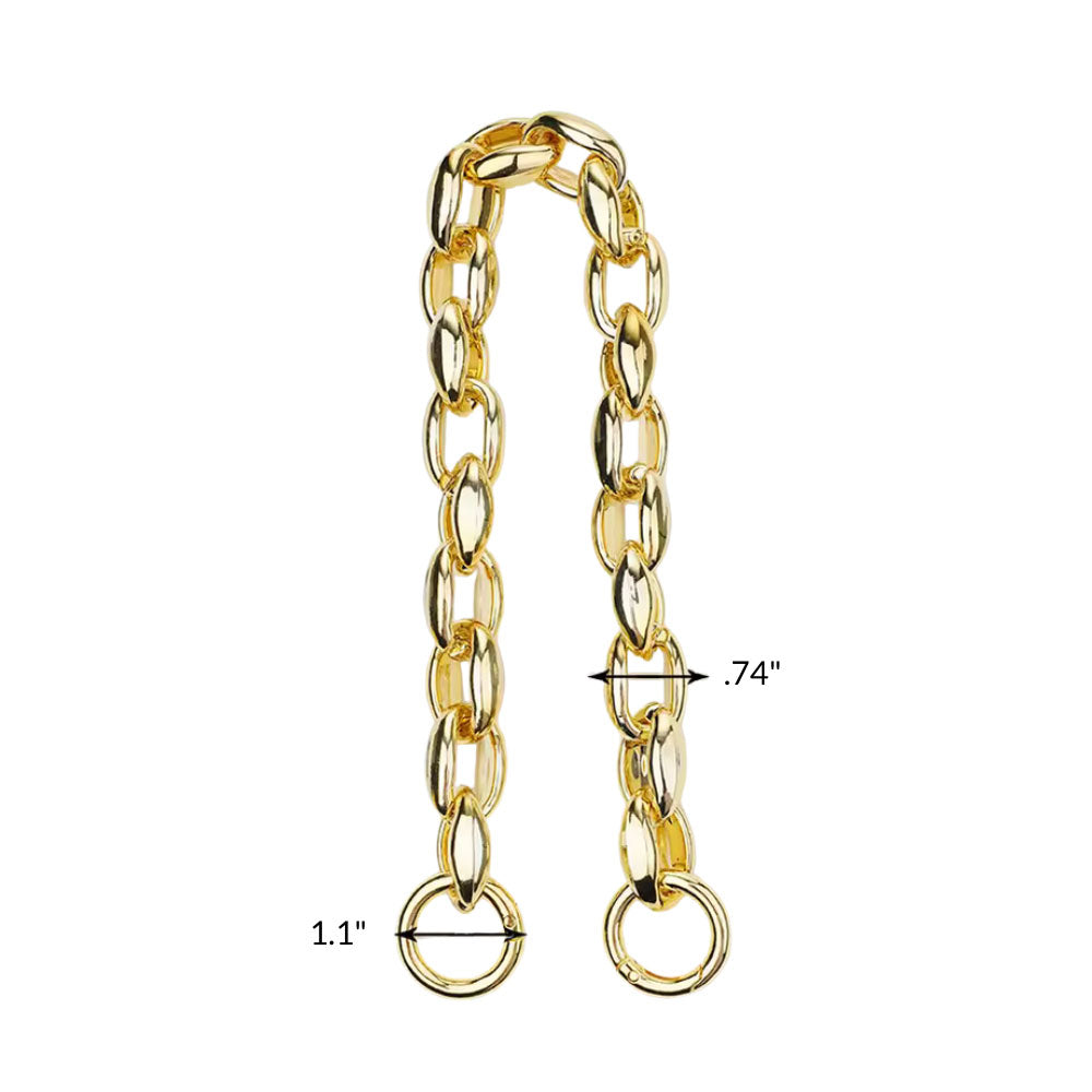 Whether you're customizing a L&M bag for a more personalized touch (fun tip: you can transform our boxie bags into cute handbags) or looking to spruce up an old bag in the back of your closest, our shiny lightweight oval link bag strap offers just the right amount of hands-free bling and support for your favorite bag and all it’s belongings. Available in two lengths with easy round spring clip claps.