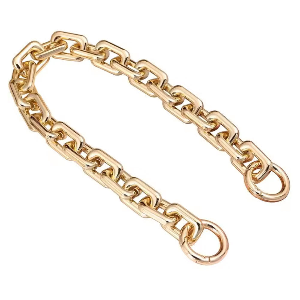 Whether you're customizing a L&M bag for a more personalized touch (fun tip: you can transform our boxie bags into cute handbags) or looking to spruce up an old bag in the back of your closest, our shiny lightweight square link bag strap offers just the right amount of hands-free bling and support for your favorite bag and all it’s belongings. Available in two lengths with easy round spring clip claps.