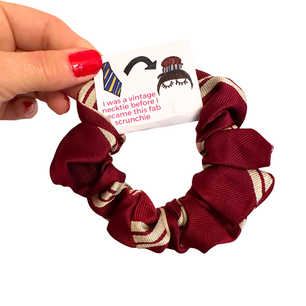 Looking to tame your flyaways in style? Look no further, our one-of-a-kind scrunchie has you covered. Handcrafted from the same fab upcycled necktie as our Harry Biggi bag and durable thick elastic (so it will stay in place), it'll make a statement holding up your hair or on your wrist. Best part it's silk so it'll easily come out without snagging your hair.