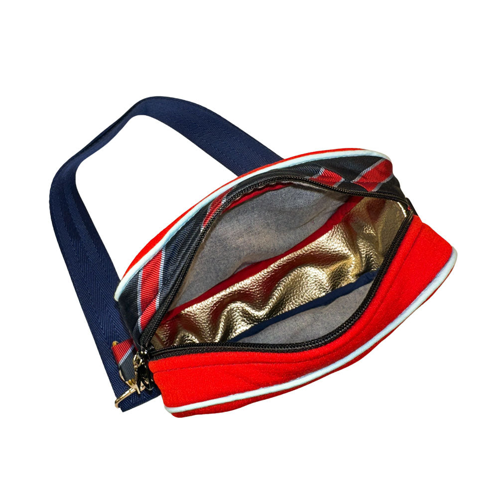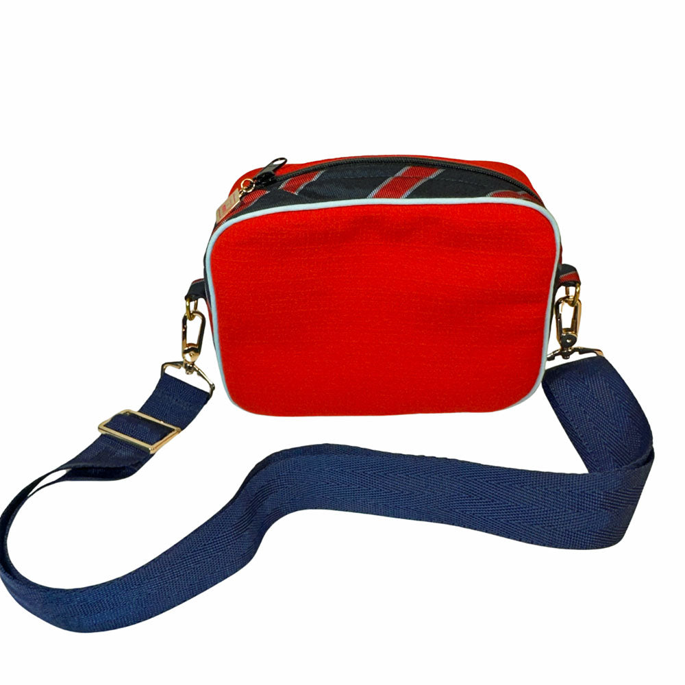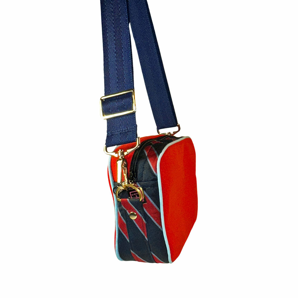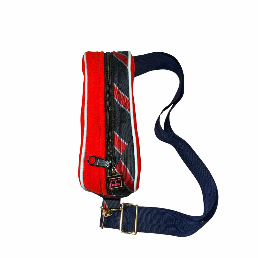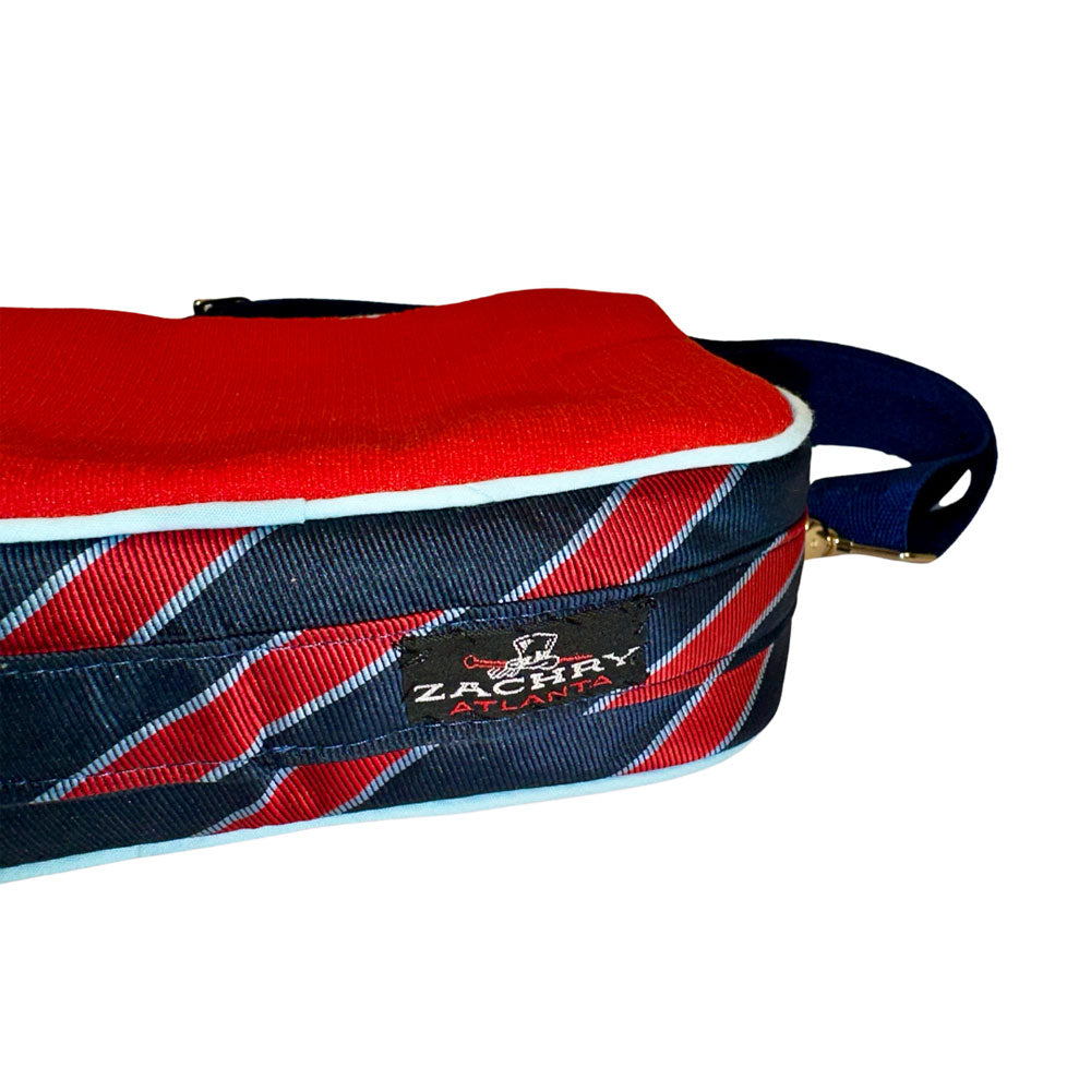 Say hi to Joan, she's an unmatched companion for your busiest of days. There’s no denying Joan is the perfect size for concerts or game day, but she's equally as fab to tote around while you check off each box (okay. . . most boxes) of your to-do list. She's a one-of-a-kind standout (like YOU!), handcrafted from a thrifted tie (including it’s original Zachry's of Atlanta label sewn on her bottom) and a retro quilt topped off with light blue pipping (the small details make all the difference).