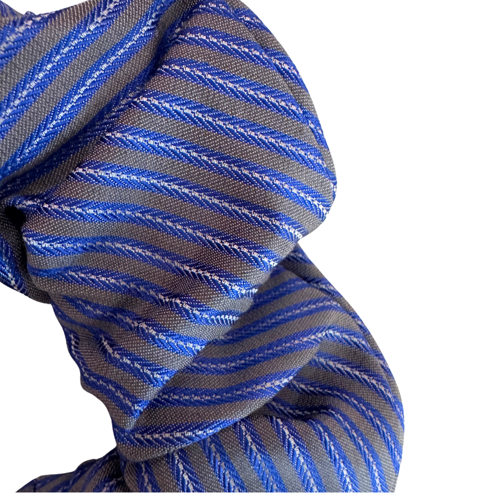 - handcrafted from a silk necktie so it wont snag your hair