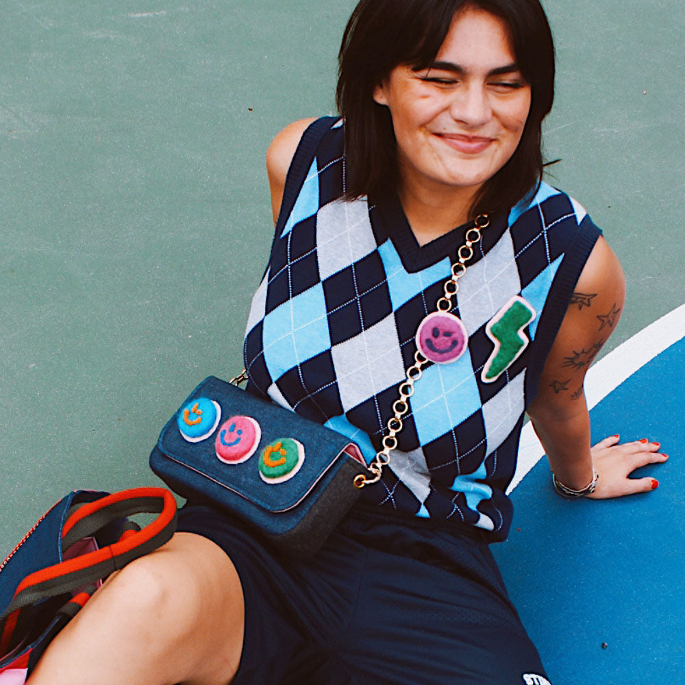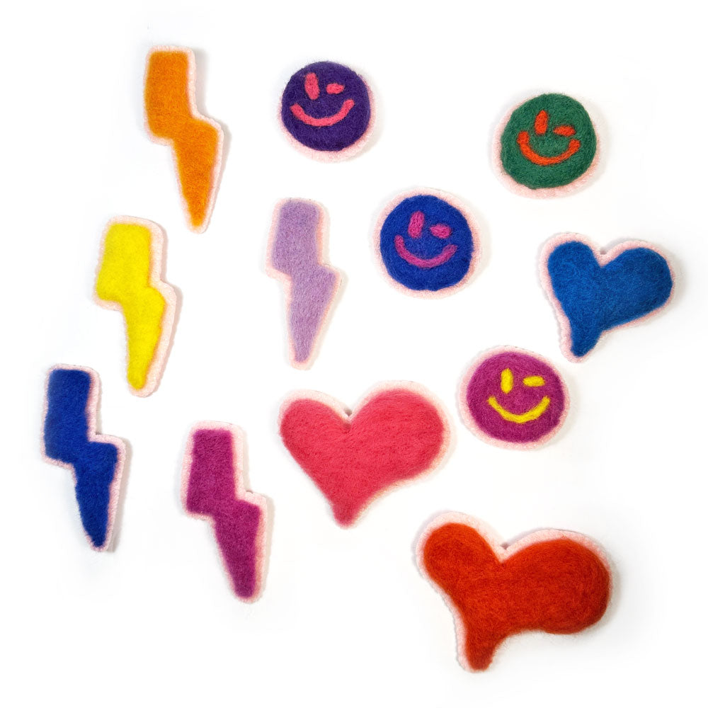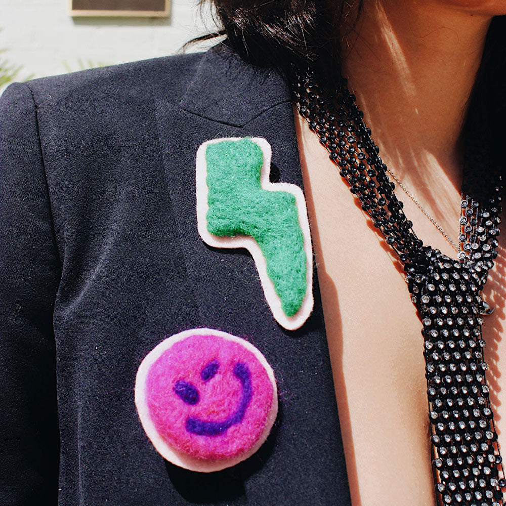 Crafted by local artist and student Gianna Smith, these fabulously funky smileys, hearts, and lightning bolts make an ah-dorable embellishment to any bag, blazer, backpack, and anything in between.