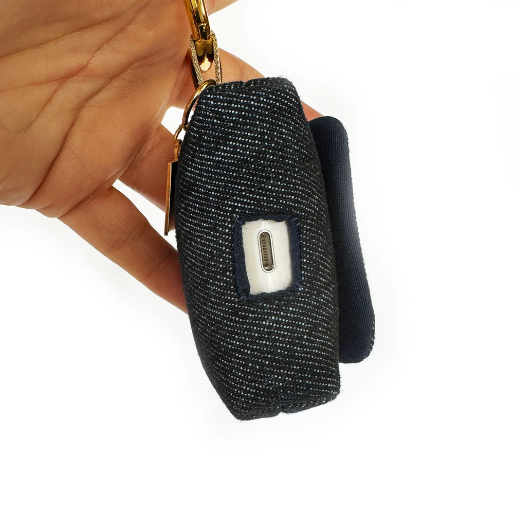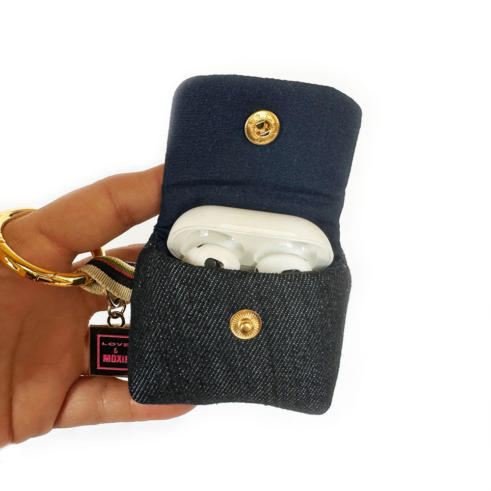 Say hello to Marcia, your new fab BFF. She's truly one-of-a-kind (like you!), meticulously handcrafted from a pair of thrifted Levi 511 jeans and has soft foam padding so your pods will stay safe and sound. Marcia has a clip and go clasp for all your on-the-go needs and a charging notch - so you don't have to take your AirPods out when they need more juice!