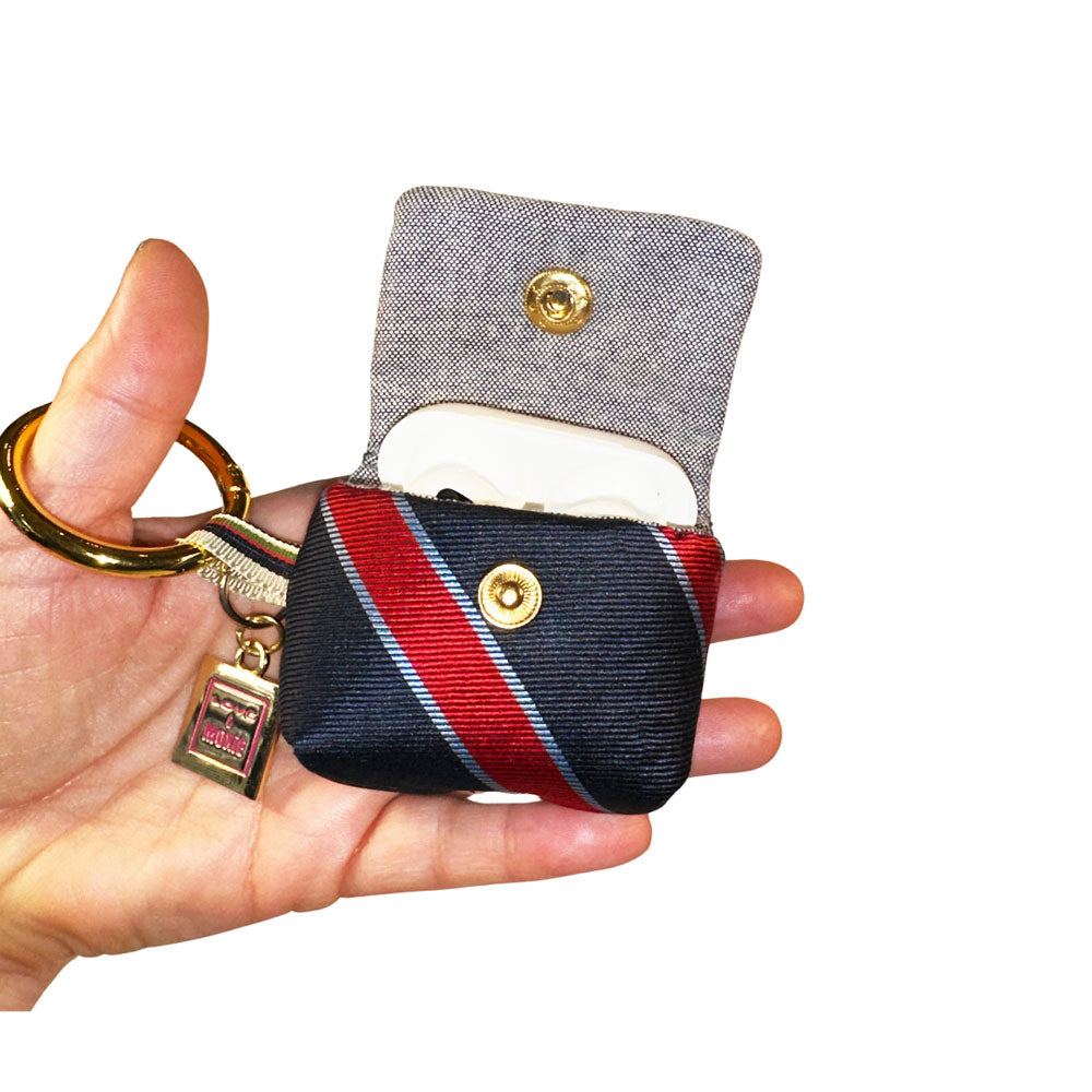 Say hello to Joan, your new fab BFF. She's truly one-of-a-kind (like you!), meticulously handcrafted from a swanky, upcycled tie. Joan has soft foam padding so your pods will stay safe and sound and a clip-and-go clasp for all your on-the-go needs. Her charging notch is the cherry on top - meaning you don't have to take your AirPods out when they need more juice!