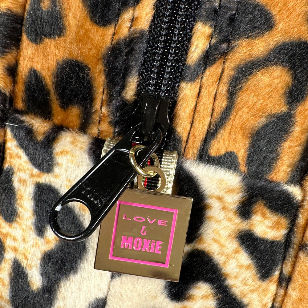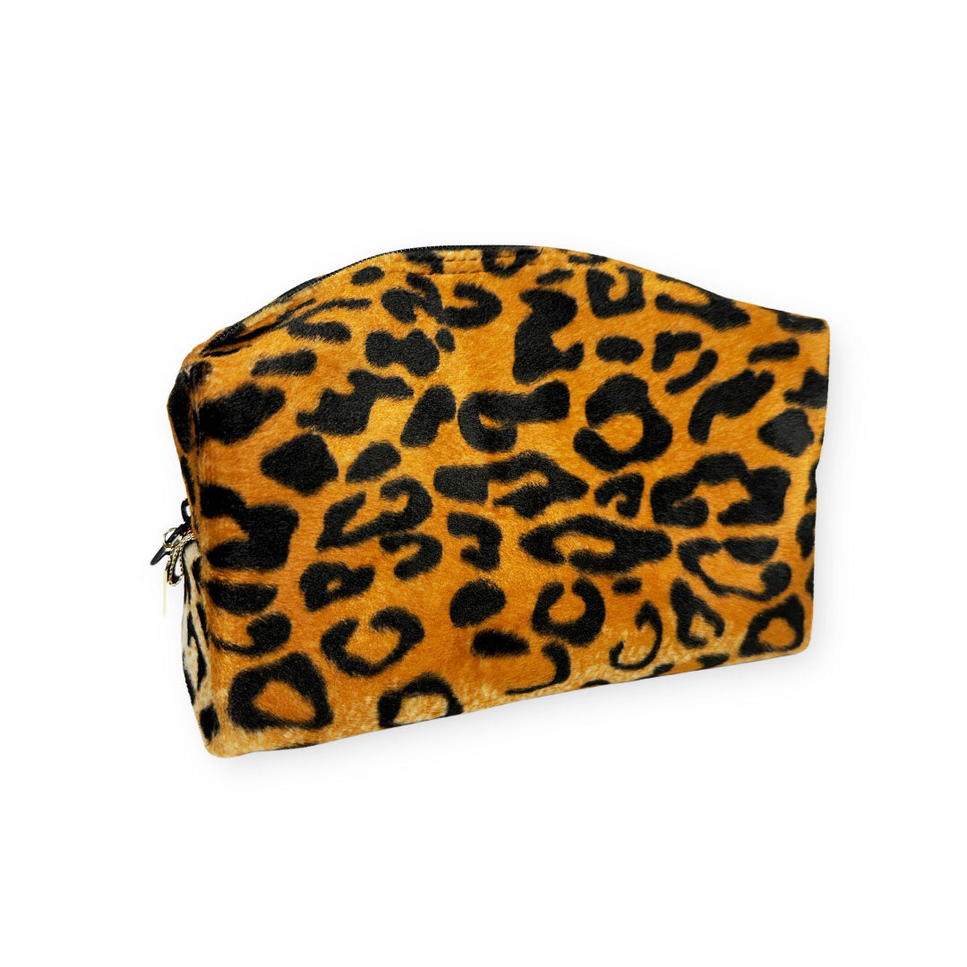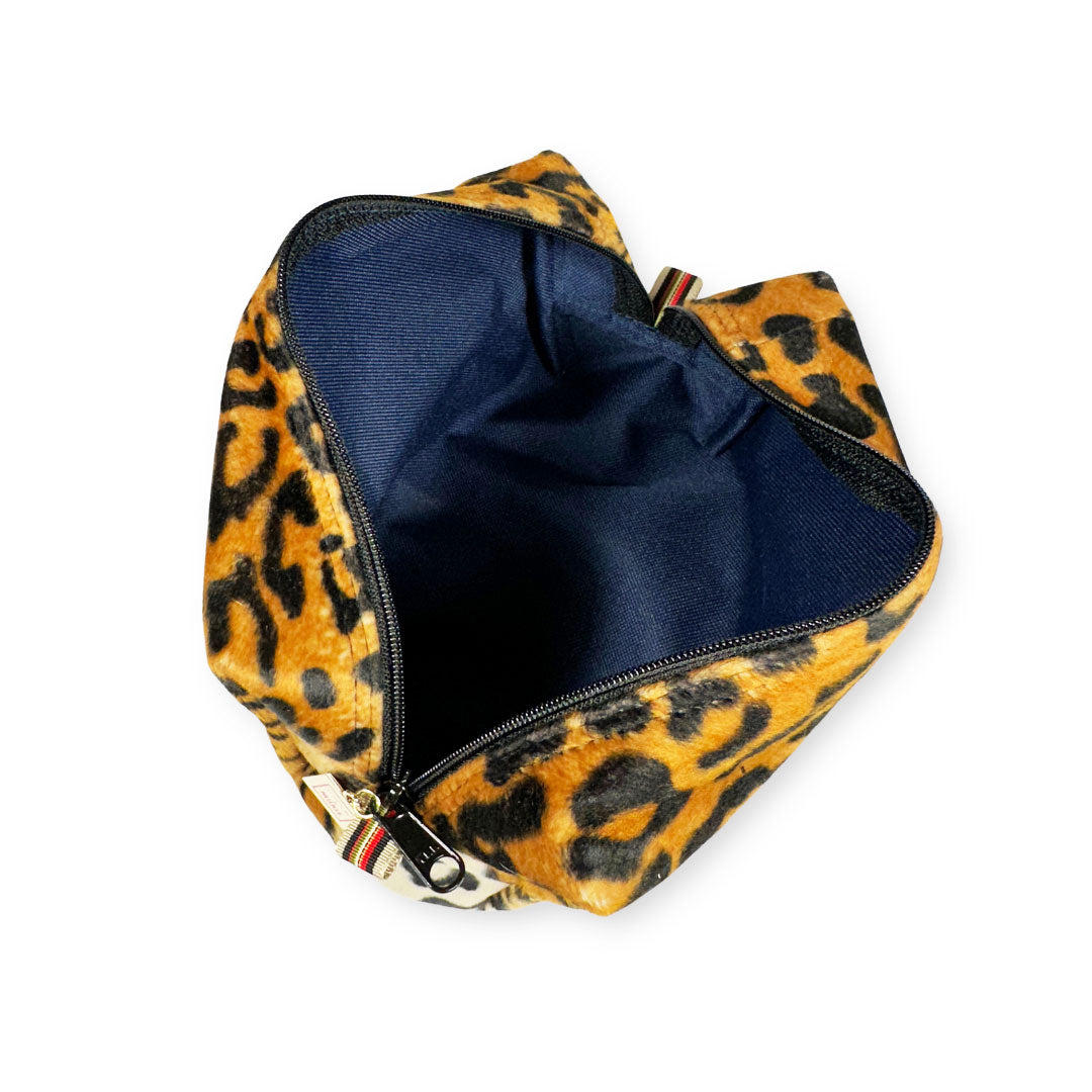 Meet Sloane, your fuzzy new bestie perfect for corralling all your on-the-go goods. Her fabulously functional size makes her perfect for organizing your tech must-haves, toiletries, make-up, and more. She's handcrafted from super lux leopard faux fur with a buttery soft feel which you can't help but caress. Even better, Sloane is lined with a wipe-clean, waterproof canvas, which means no more trips on the hot mess express or grimy bottoms when your blush pops open or your contact solution takes a spill.
