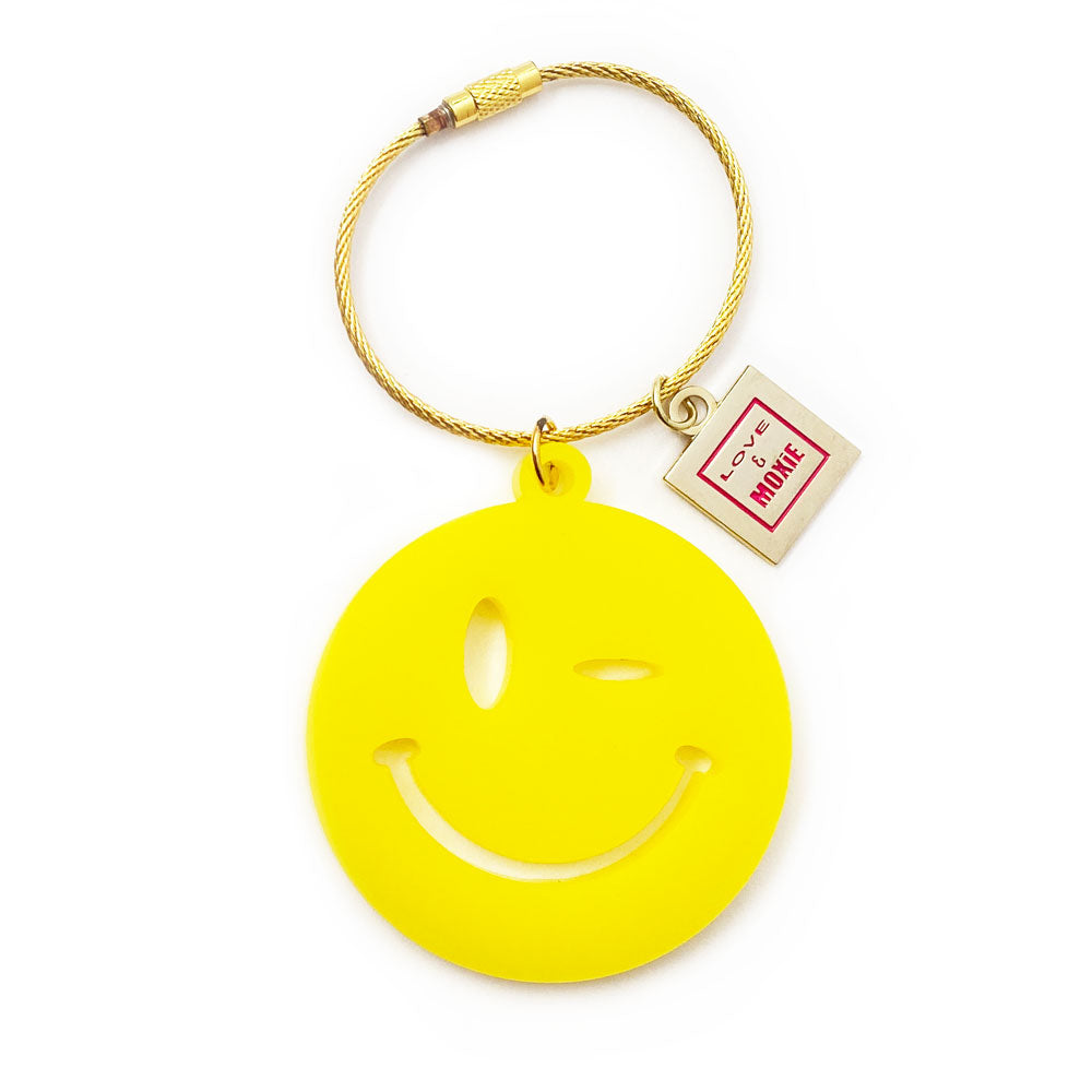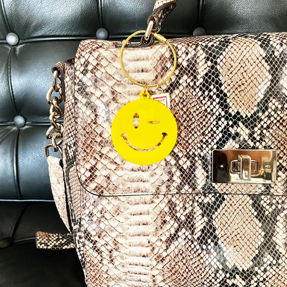 With its sassy wink and infectious smile, the Wink will add a smile to your day. Laser cut in-house from thick premium acrylic and with its durable gold twist closure cable you can attach it to most anything - attach it to your favorite bag and make it new again, attach it to your suitcase to easily find it, add a splash of personality to your keys (added bonus, you won't grab the wrong ones), or our favorite, add it to the neck of your favorite spirit for an unforgettable hostess gift!